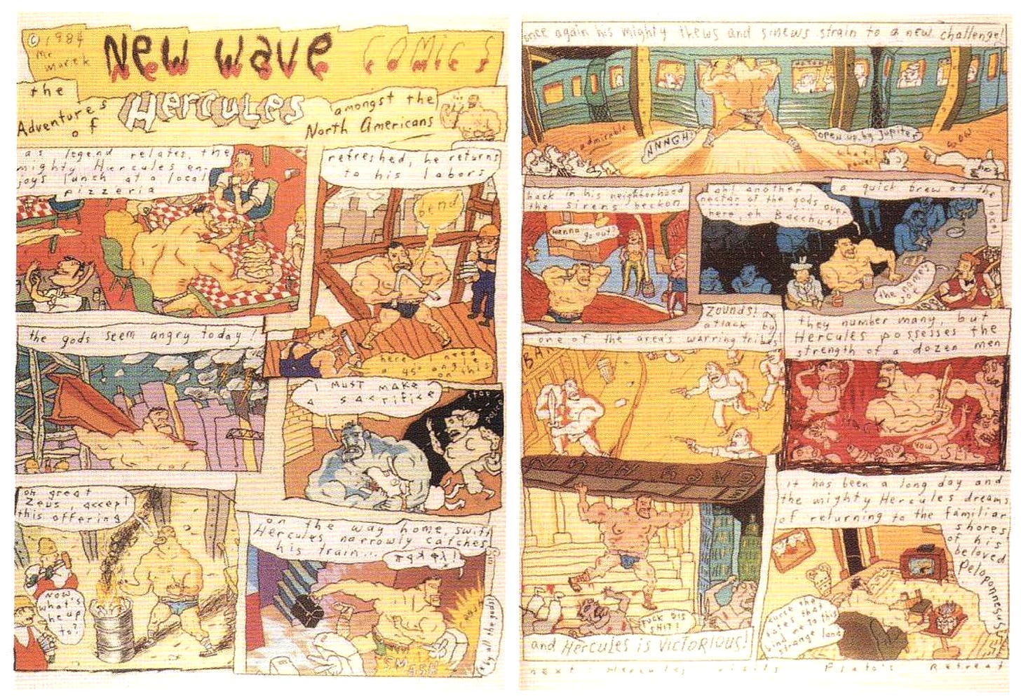 The “New Wave “ strips were all one-offs as far as any theme goes. Initially I created a two-page Hercules strip as just another one-off piece. It was basically an homage to the sword and sandal epics of my television youth. Hercules Conquers Atlantis. Hercules Against the Moonmen. My take was Hercules versus Modern America. Michael Gross, the NL art director at that time, suggested I continue with more Hercules-themed strips. Actually, it was more than a suggestion. I suspect he was weary of my randomly themed comics and saw more value in a strip featuring a bit more continuity. I have to admit I was reluctant to abandon the “New Wave” banner— I enjoyed the freedom to draw off any idea that would come to mind. But that’s where the Employer/Employee dynamic weighs in heavily.